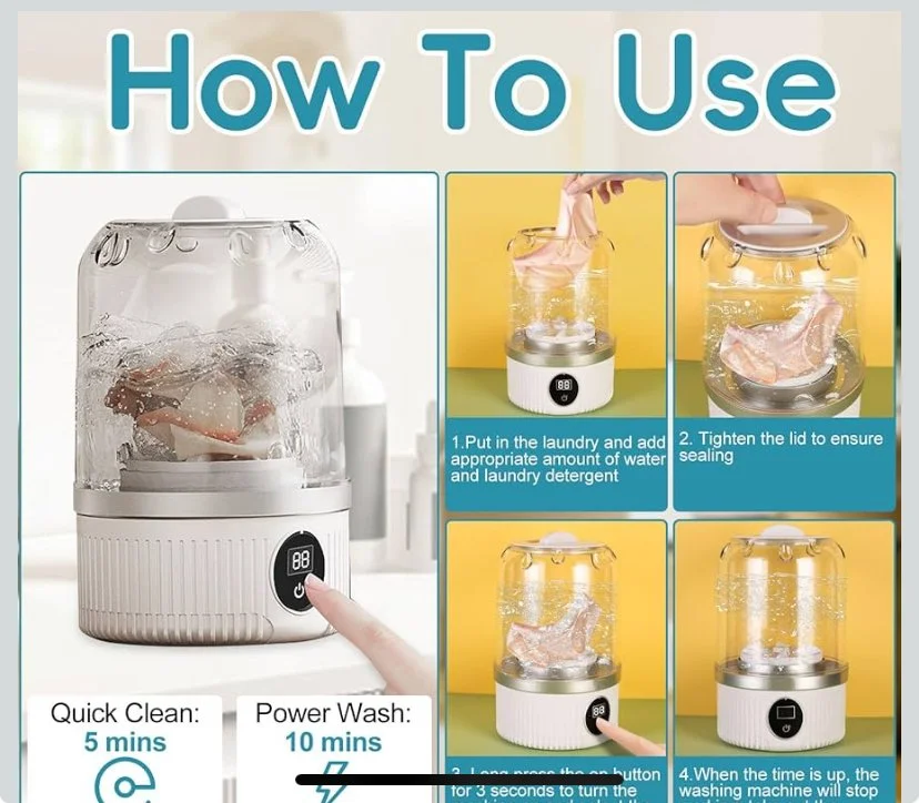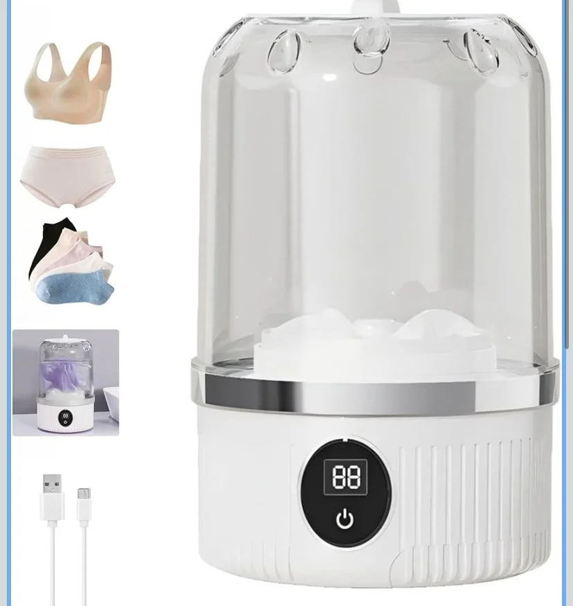 Shop › Portable Mini washing machine Image 1 of 3 Image 2 of 3 Image 3 of 3 Portable Mini washing machine $20.00 Portable Mini Washing Machine, Underwear Washer, 2025 New Mini Automatic Washing Machines, Rechargeable Cordless Washing-Machine, Compact Travel Laundry for Bra, Underwear, Socks (white) Purchase Added! Portable Mini Washing Machine, Underwear Washer, 2025 New Mini Automatic Washing Machines, Rechargeable Cordless Washing-Machine, Compact Travel Laundry for Bra, Underwear, Socks (white)